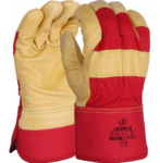 High quality cow grain leather rigger glove.8oz cotton drill backing and rubberised cuff for added wrist protection.Fleecy palm lining for snug comfortable fit.Traditional, tough, hardwearing glove with good abrasion, cut and puncture resistance.